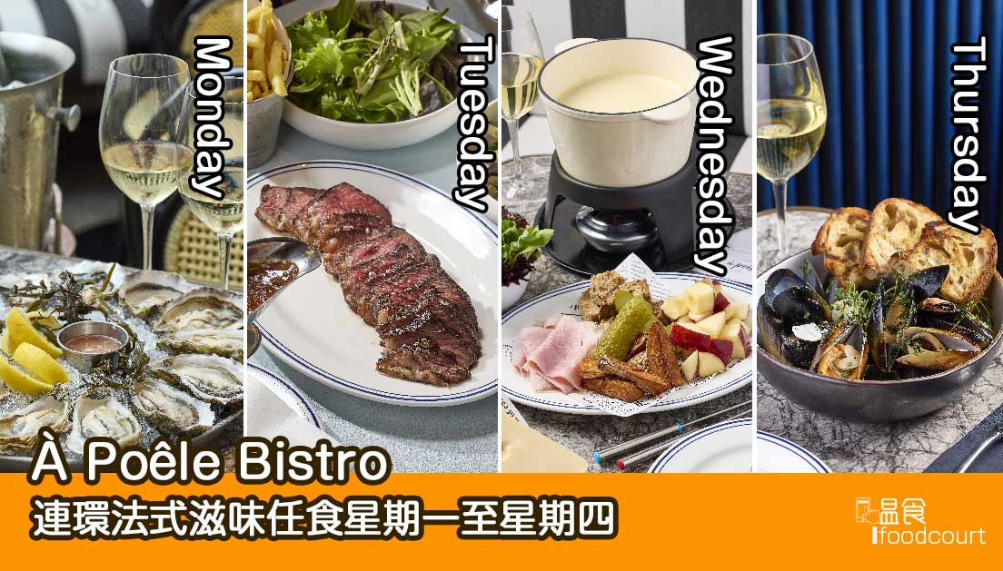 位於太古城核心地段的 À Poêle Bistro,一直是不少居民於下班後小酌聚會、享用晚餐的首選法式小館。餐廳近日再度升級其餐飲體驗,推出一系列平日專屬餐飲優惠,當中涵蓋任食生蠔、任食牛扒配薯條、任食青口薯條之夜及芝士火鍋等多項主題,以期將一週的工作天悉數化為值得期待的美食時刻,必令客人捧腹而回。