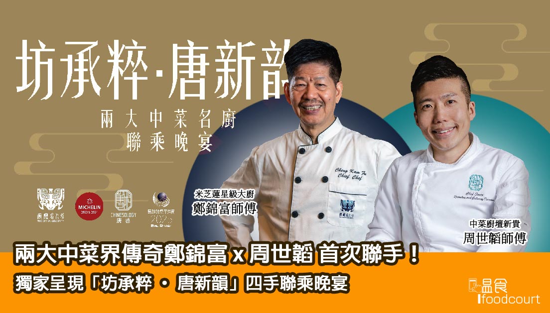 中菜界的兩大傳奇首度將交鋒!米芝蓮星級名廚「富哥」鄭錦富與唐述廚藝總監「世韜師傅」周世韜,因彼此的味蕾契合和完美合作,將在今年 10 月破天荒攜手合作。以「坊承粹 ·唐新韻」為主題,呈獻僅限兩晚的四手聯乘晚宴。