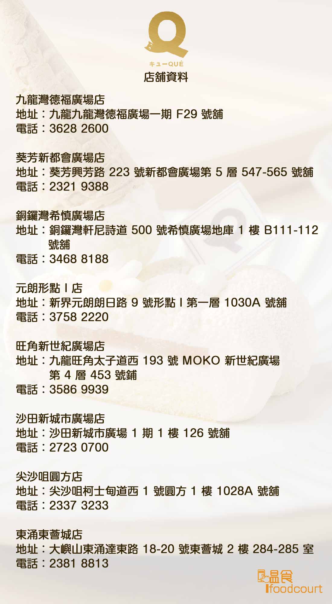 Share via Whatsapp全新據點 第八間 QUE 進駐九龍灣德福廣場
