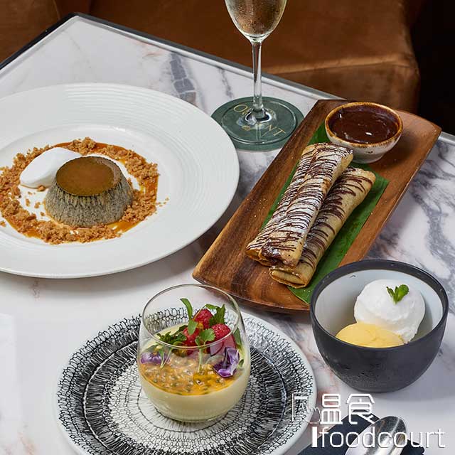 以濃郁黑芝麻、伴以清新香茅及脆口杏仁碎的黑芝麻越式焦糖燉蛋、充滿玩味的朱古力春卷,絲滑細膩的熱帶風情的椰香意式奶凍,及經典而令人回味的芒果黑糯米飯。